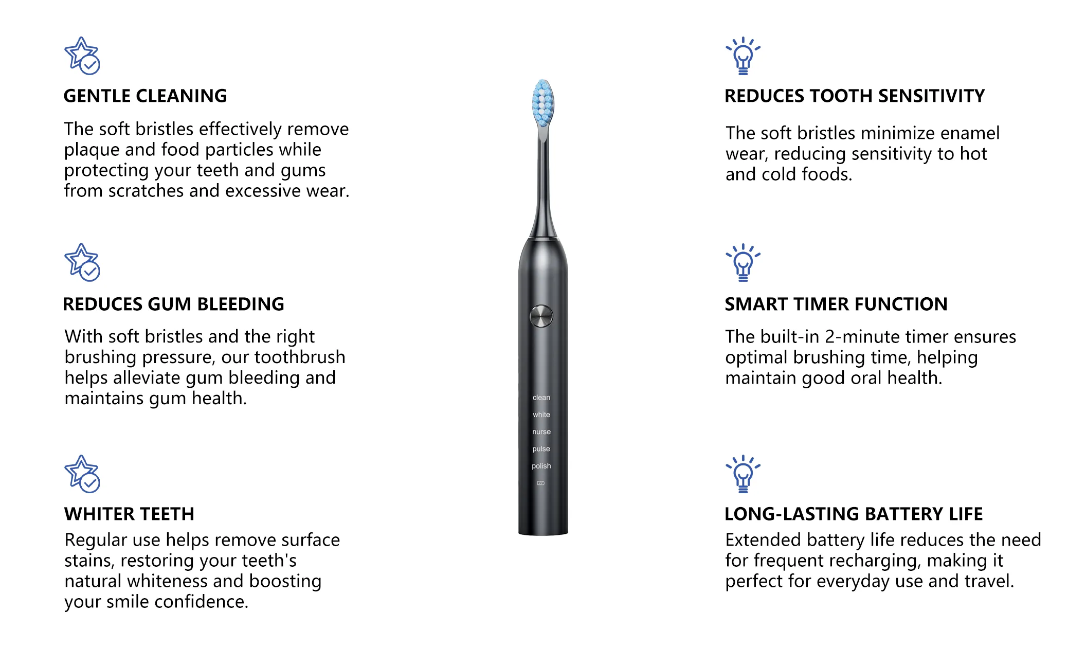 - Five Cleaning Modes - Meets all oral care needs, providing a complete solution.