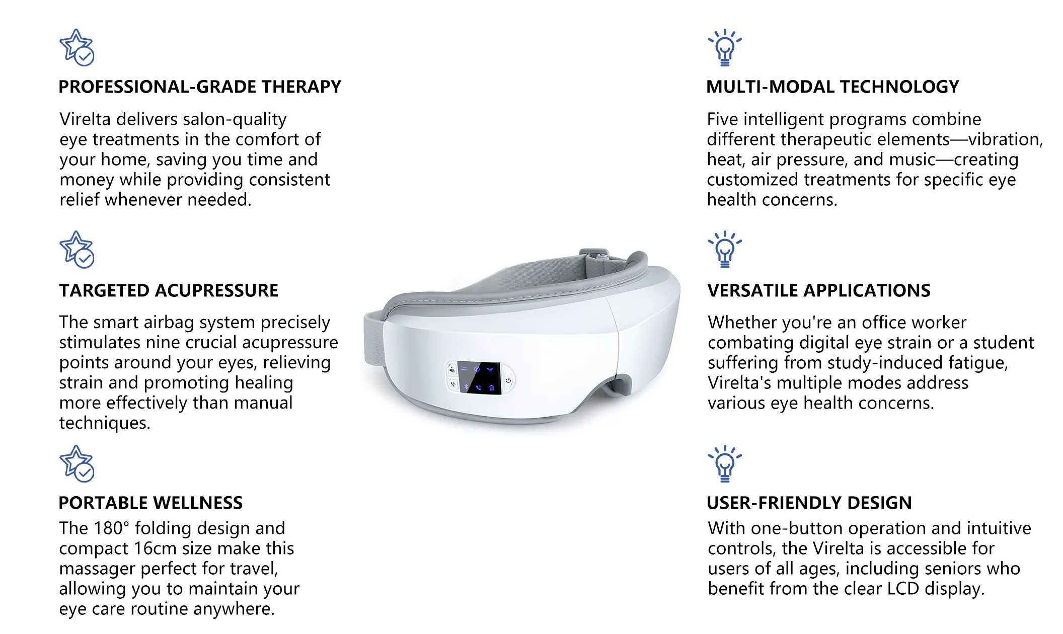 - Deep Intelligent Air Pressure Massage: Promotes circulation and actively eases tightness around the eyes.